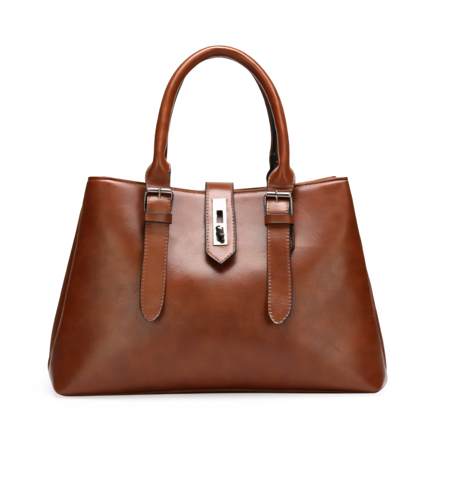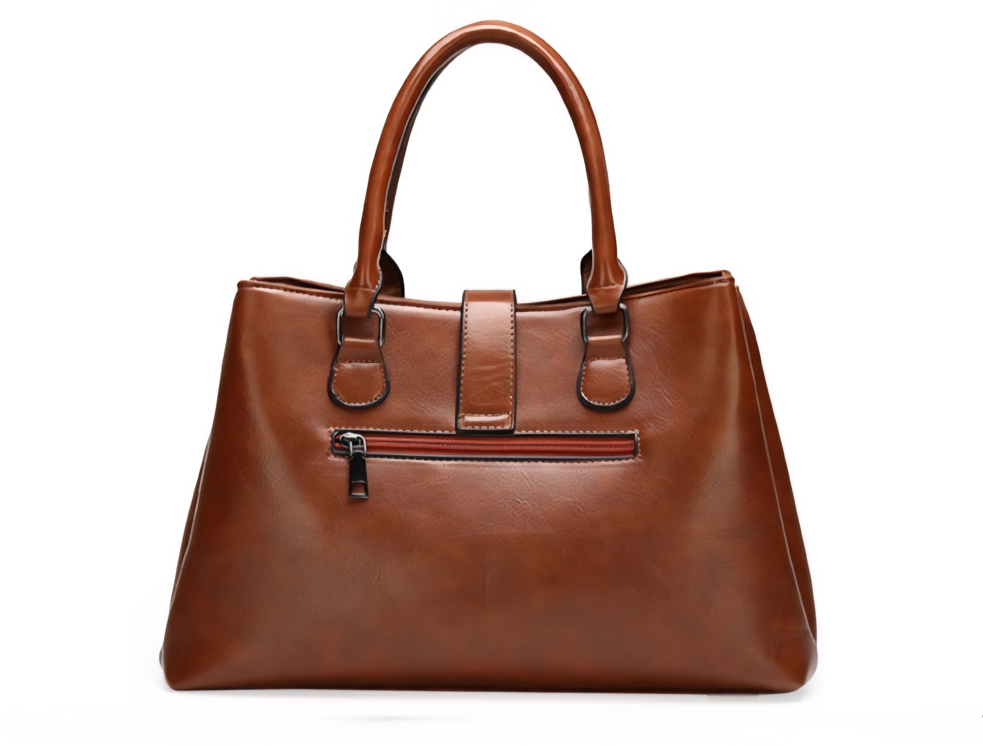 Das edle, glatte Leder-Finish sorgt für eine luxuriöse Optik, während die sorgfältig verarbeiteten Nähte und silberfarbenen Metallelemente die hochwertige Verarbeitung unterstreichen. Die stabilen Henkel liegen angenehm in der Hand und machen die Tasche zum perfekten Begleiter für Büro, Alltag oder besondere Anlässe.